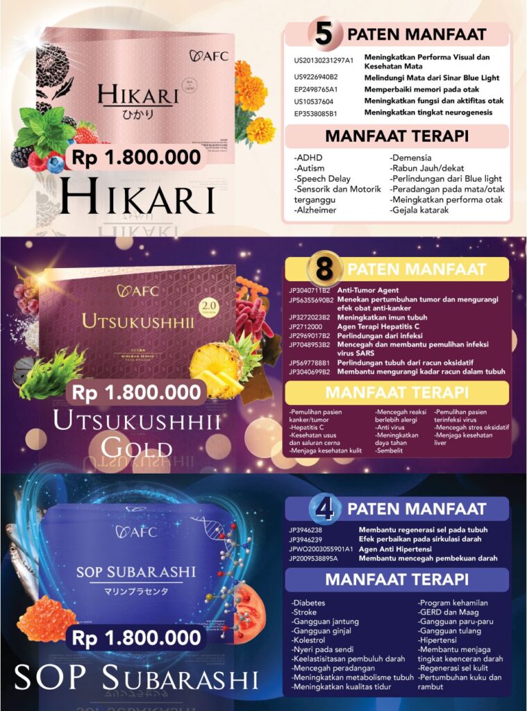 Berikut ini adalah produk unggulan AFC yang Terbukti aman di konsumsi semua usia dan dari beragam keluhan penyakit.